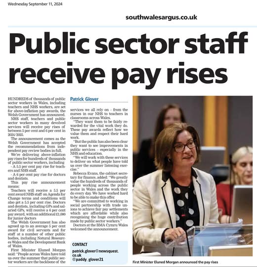 WELSH LABOUR GOVERNMENT AGREE PAY RISE FOR WELSH PUBLIC SECTOR